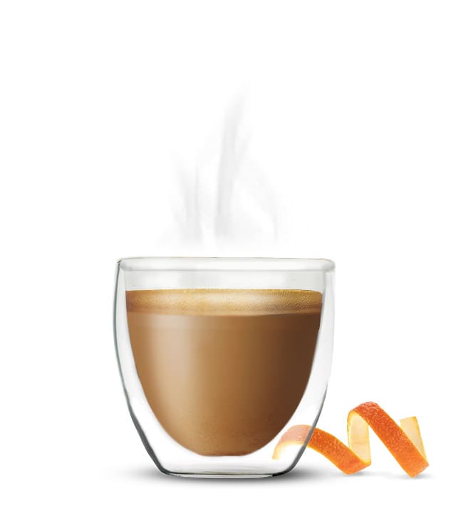 This drink is made with freshly roasted beans, steamed milk, and drops of orange “liqueur” that evaporate during preparation, leaving a rich orange flavor that coffee enthusiasts will love.